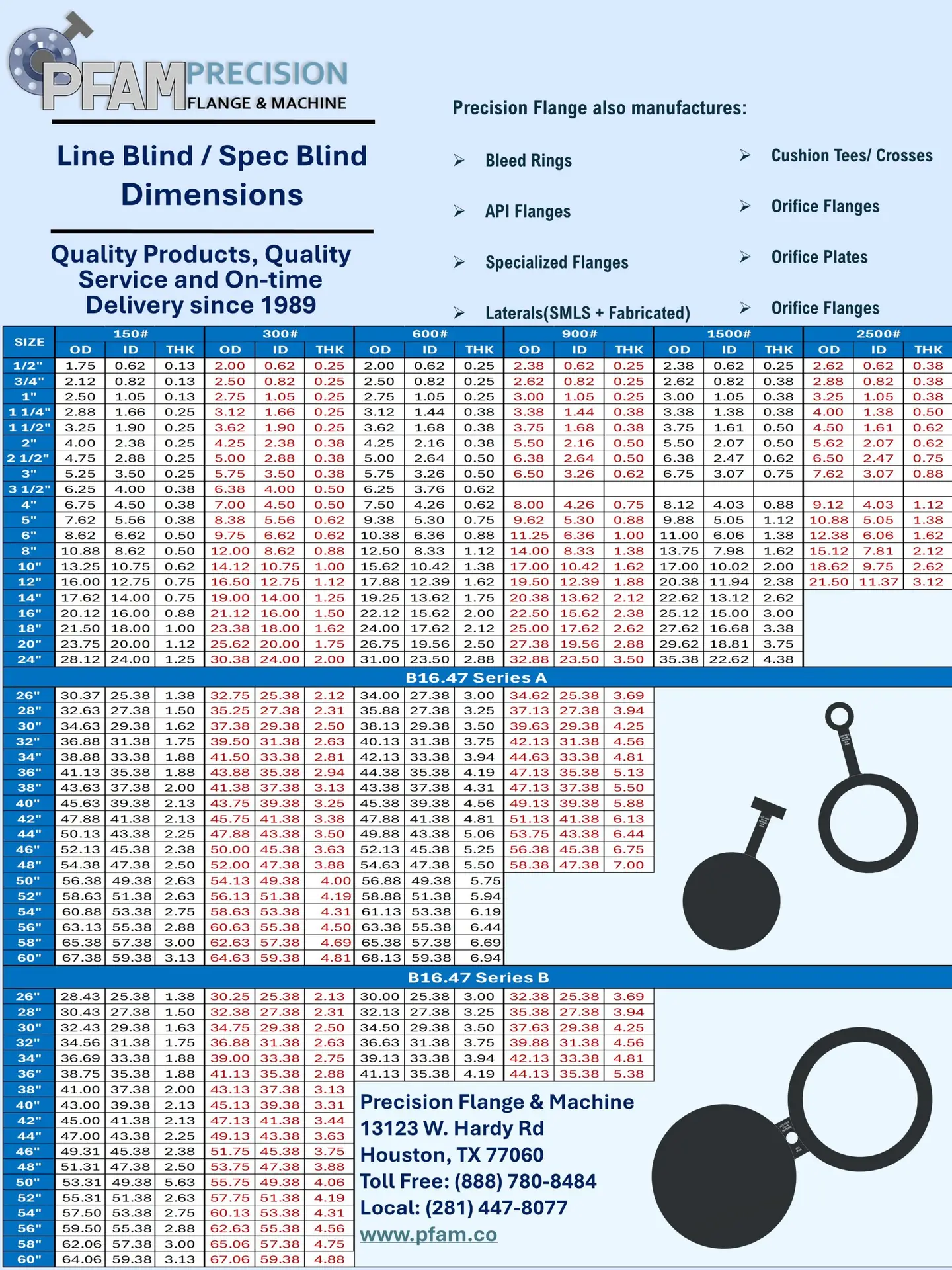 - Sizes Available: 0.50″ to 60″ and larger sizes available.